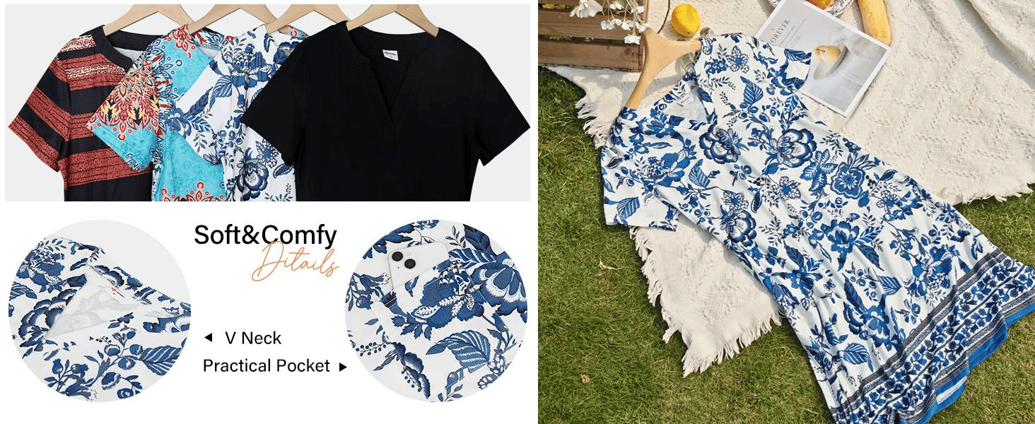 This stylish dress combines elegance with everyday versatility. The V-neck design highlights the neckline and collarbone, while the relaxed silhouette ensures a flattering fit for different body types. Perfect as a casual summer dress, floral dress, boho dress, cocktail dress, graduation dress, birthday dress, or going-out dress.